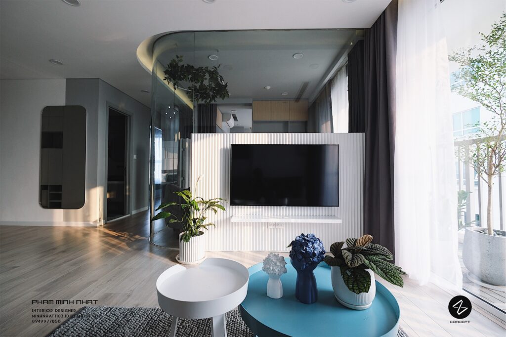 Căn hộ Curve Home trở nên nổi bật và thu hút chính là nhờ lối thiết kế với những đường cong. Điều này không chỉ đem lại sự liên kết nhẹ giữa các không gian, tận dụng tối đa nguồn sáng tự nhiên, mà còn góp phần mang đến không gian sống thoáng đạt, tiện nghi và trẻ trung cho gia chủ.