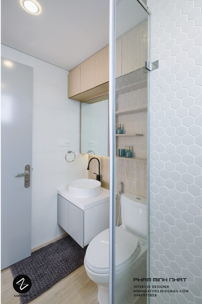 Phòng tắm gọn gàng, thoáng mát với nội thất hiện đại.